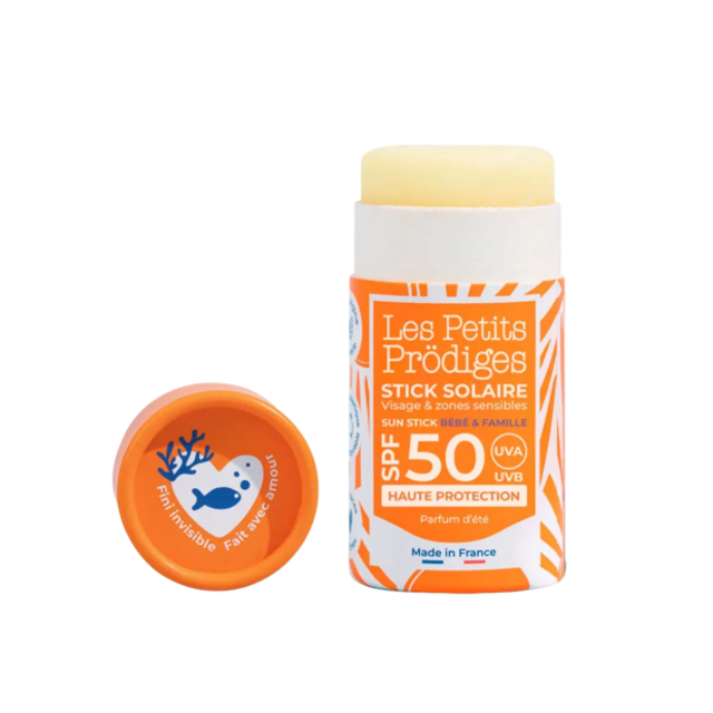 Avec le Stick Solaire Visage SPF 50 – Les Petits Prödiges, offrez-lui une barrière douce, efficace et responsable.